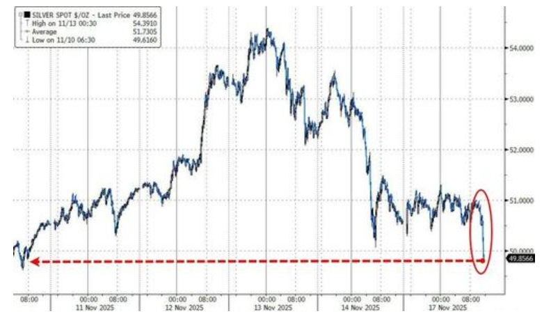 与此同时,黄金也失去了避险光环。据《华尔街日报》报道,一些分析师认为,黄金近期的交易模式更像一只投机性股票,而非传统的安全资产。周一,现货黄金价格跌至4000美元水平附近。白银价格也大幅下跌,跌破关键的50美元关口。