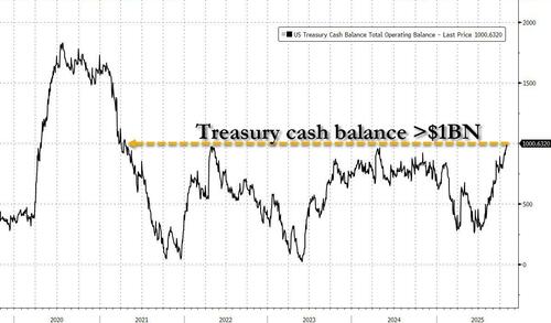 截至上周五,财政部一般账户(TGA)余额首次突破1万亿美元,创2021年4月以来近五年新高。这意味着在过去三个月内,财政部从市场吸走超过7000亿美元现金——从7月的约3000亿美元飙升至当前水平。