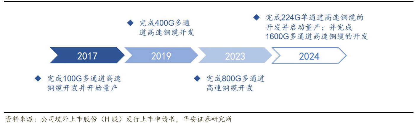 产品进度:子公司乐庭智联深耕通信线缆领域,具有丰富的产品开发经验和制程控制经验,掌握全部重点产品的核心技术。截至2024年,乐庭智联已完成224G单通道高速铜缆的开发并启动量产,启动800G多通道高速铜缆的量产,并完成1600G多通道高速铜缆的开发,持续推动行业技术迭代。