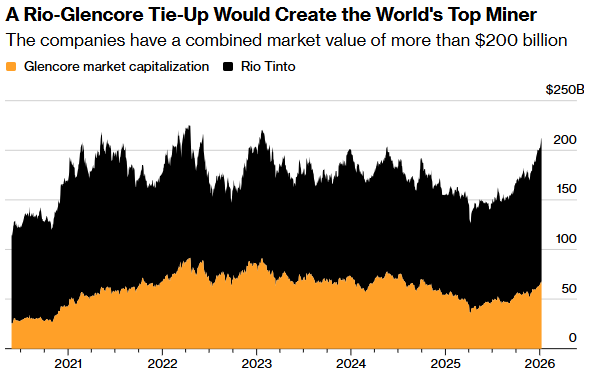 智通财经APP获悉,力拓(RIO.US)正在洽谈收购嘉能可公司,以打造全球最大的矿业公司,合并后的市值将超过 2000 亿美元。此前,双方的谈判在一年多前破裂。两家公司周四分别发表声明称,他们一直在讨论合并部分或全部业务的可能性,包括全股票收购。这两家公司的合并将成为该行业有史以来规模最大的交易。