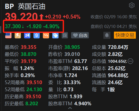 美股异动丨英国石油盘前跌4.9%,上季经调整净利润符预期,但暂停股票回购