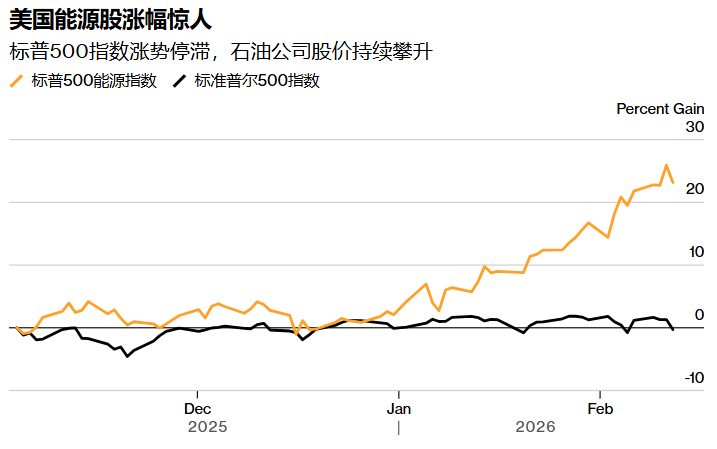 对于能源股而言,强劲的开局往往会带来强劲的收尾:根据 Bespoke Investment Group 汇编的数据,此前三次能源板块从年初到 2 月中旬上涨 10% 后,在剩余的年份里又至少上涨了 15%。