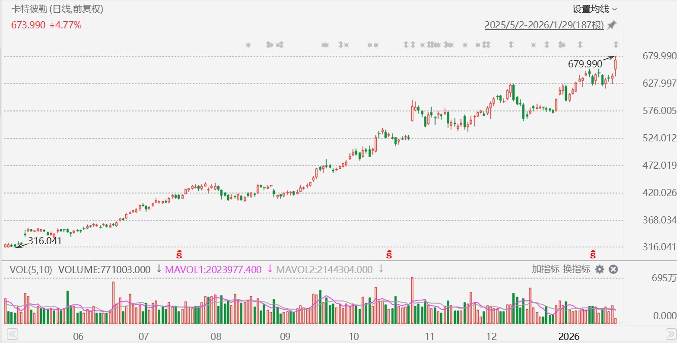 格隆汇十大核心——卡特彼勒涨近6%创历史新高,Q4业绩超预期