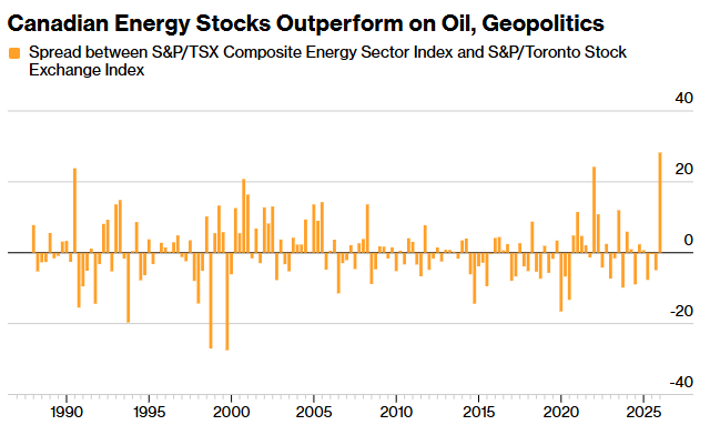 美国和加拿大能源股上一次出现如此大幅度的上涨是在2022年第一季度——当时俄乌战争爆发。但这种超额收益并未持续太久,一年后能源股便开始下跌。虽然地缘政治目前仍然是油价的主要驱动因素,但这次的情况有所不同。