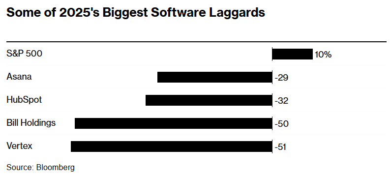 目前,投资者们不像2024年那样广泛投资于几乎所有软件公司,而是正在抛售那些没有令人信服的AI战略或对这项具备划时代意义的重大技术缺乏明显防御措施的软件公司股票。