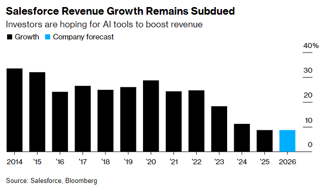 随着AI颠覆传统软件行业的声浪渐强,投资者日益担忧传统软件商将被AI新锐取代。像赛富时这样按用户数收费的软件企业面临最大质疑——市场普遍认为AI技术将接管其现有产品功能,导致客户企业减少人力资源投入。
