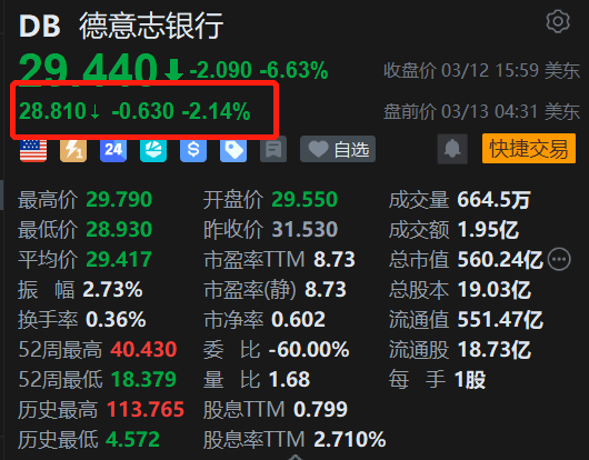 美股异动|德银盘前续跌超2% 警告300亿私募信贷敞口或存风险