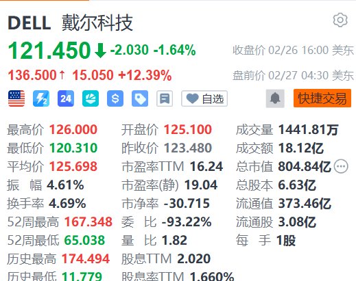 美股异动丨戴尔盘前大涨超12%,业绩及指引双双超预期