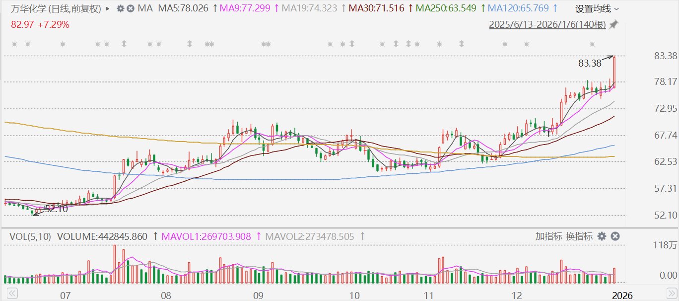 格隆汇十大核心——万华化学大涨近8%,股价创逾1年新高