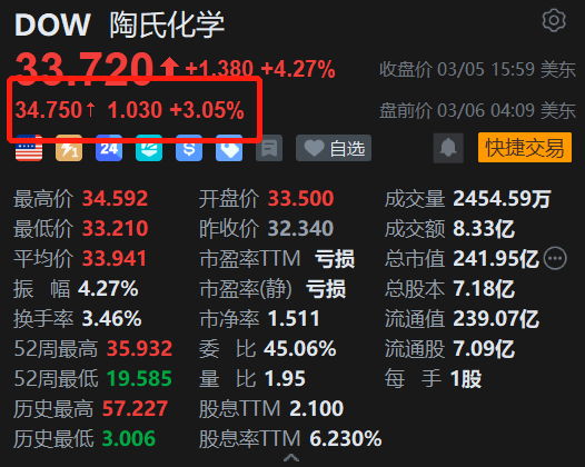 美股异动|陶氏盘前续涨3% 上调EMEAI地区多元醇价格 小摩上调其评级及目标价