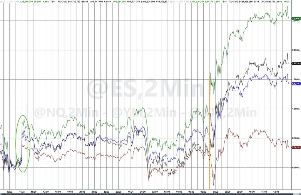 美股盘前,继上周五纽约联储主席威廉姆斯释放鸽派信号后,美联储理事沃勒也明确表示主张12月降息,因其更担心劳动力市场而非通胀。这些表态极大地提振了市场对美联储将再次降息的预期。