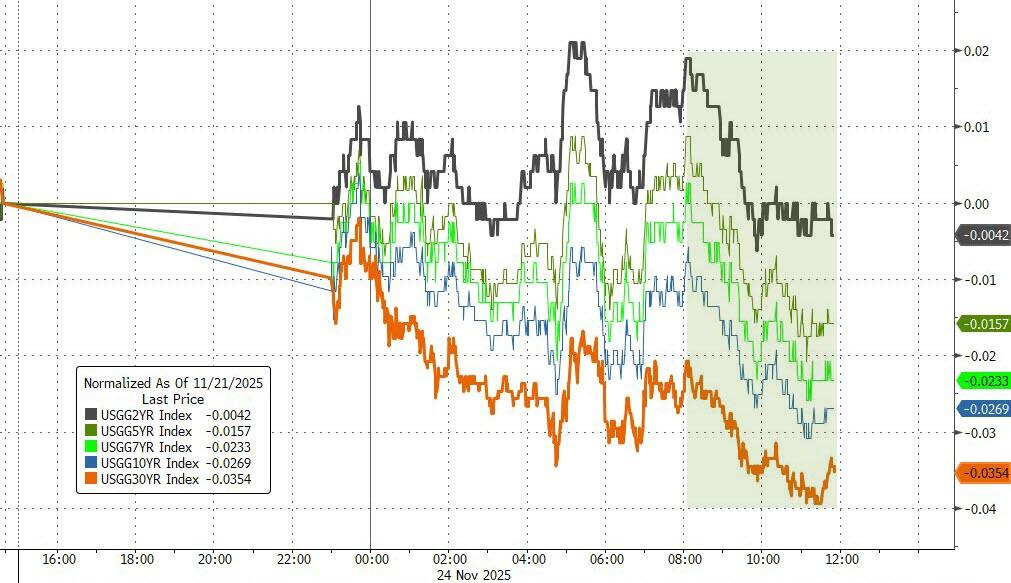 美债收益率全面下跌。30年期德债收益率跌约2个基点。