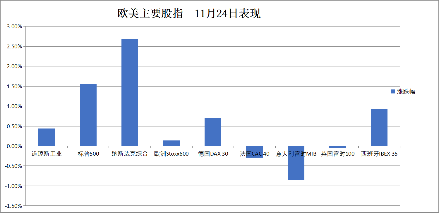 (11月24日 欧美主要股指表现)