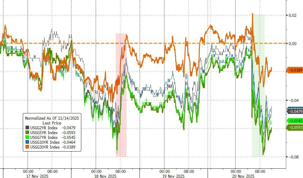 英伟达的超预期财报叠加“金发姑娘”式的非农数据(新增就业超预期但失业率上升),本应是双重利好。然而,比特币跌破9万美元关口引发风险资产抛售,同时市场转而关注美联储官员的鹰派言论和对私人信用风险的担忧。
