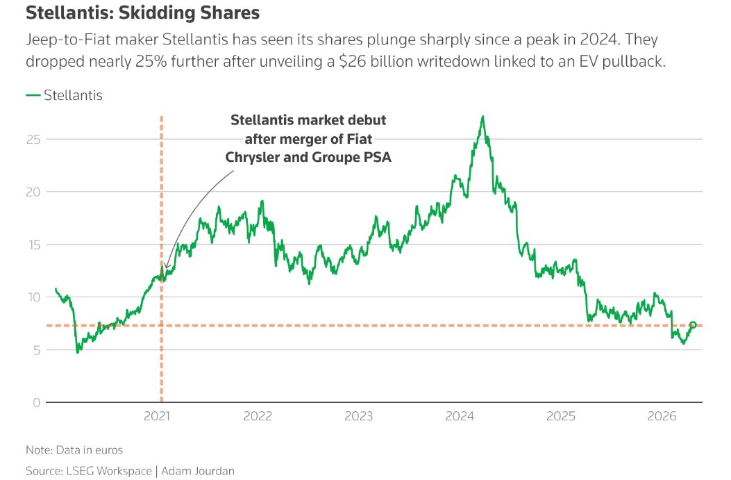 市值暴跌至仅仅210亿欧元的Stellantis