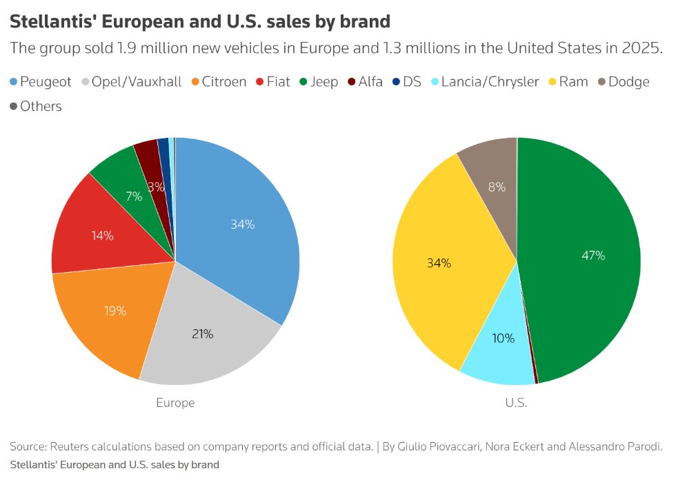知情人士表示,Filosa的计划将把投资大规模集中于Jeep、Ram、标致和菲亚特,因为这些品牌销量更高且利润增长趋势更强劲,是“真正重要”的品牌。