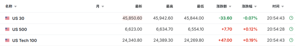 截至发稿,道琼斯指数期货跌0.07%,标普500指数期货涨0.12%,纳斯达克100指数期货涨0.19%。
