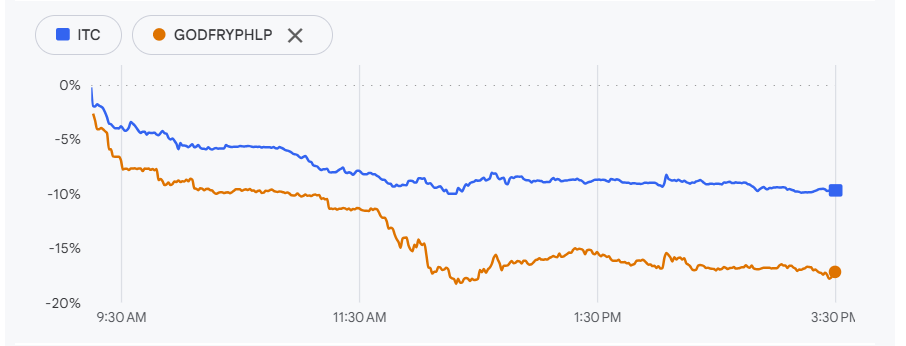 印度烟草公司ITC和Godfrey Phillips India均重挫,前者成为Nifty 50指数最大输家、领跌印度快消品指数。两只股票的交易量均超过三个月日均水平的20倍。