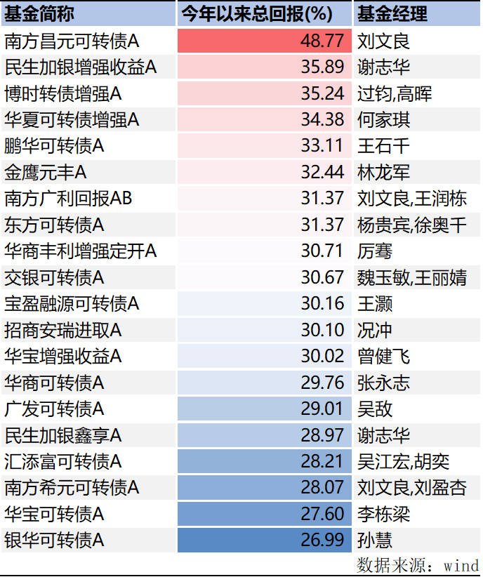 刘文良管理的南方昌元可转债基金,以48.77%的收益率,位居债券型首位。