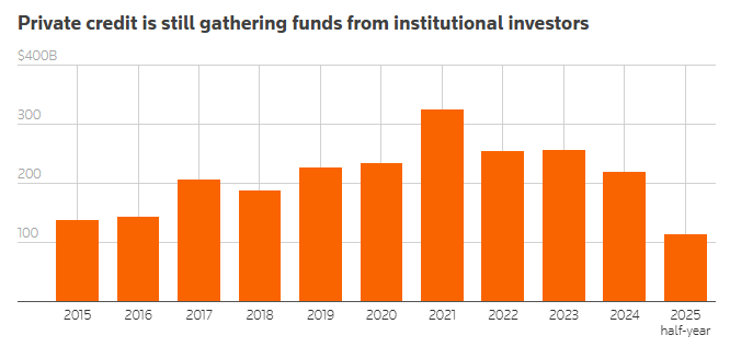 不可否认,私募信贷巨头们丝毫没有停止发展的迹象。截至2024年,该行业的资产规模已稳步增长至2.4万亿美元。据PitchBook的数据显示,仅在2025年上半年,传统的封闭式机构基金就募集了1130亿美元。而且,新的资金来源正日益补充这些传统渠道。像黑石旗下的BCRED这样的所谓“永续基金”正在快速增长,这类基金允许在一定限额内赎回,因此深受富裕人士的青睐。据PitchBook估计,截至2025年6月底的六个月内,这些半流动性产品筹集了480亿美元,约占流入传统机构基金资金的40%。而对散户资金的追逐还将继续。继特朗普总统8月份签署行政命令后,基金经理们可能很快就能吸引美国退休储户的资金。咨询公司Oliver Wyman估计,到2029年,分配给私募信贷的个人财富资金规模可能增长近四倍,达到1.5万亿美元。
