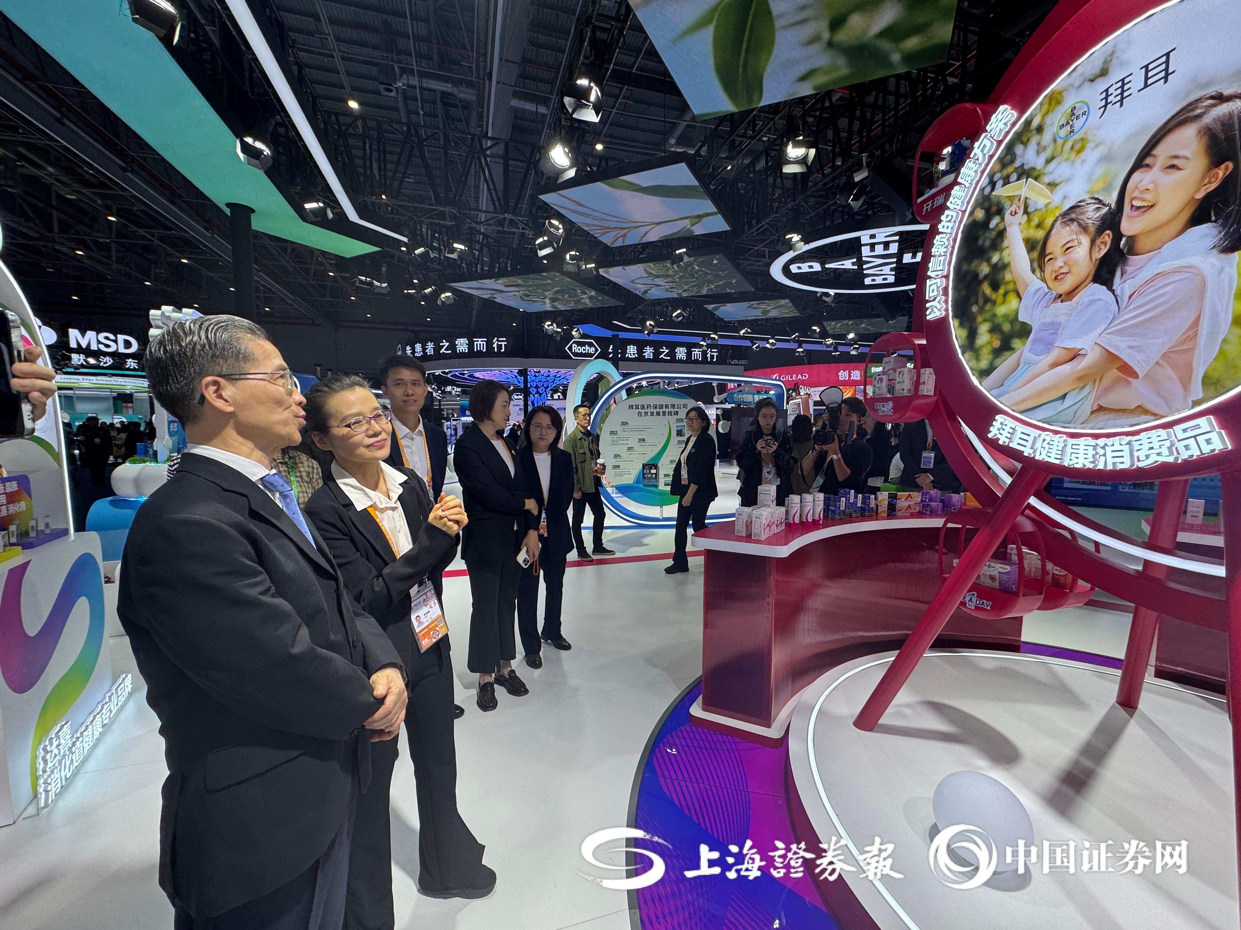 周汉民接连参观了美敦力、西门子医疗和瓦里安、拜耳、阿斯利康等展台。看到各种首发首秀云集的盛况,周汉民赞不绝口。