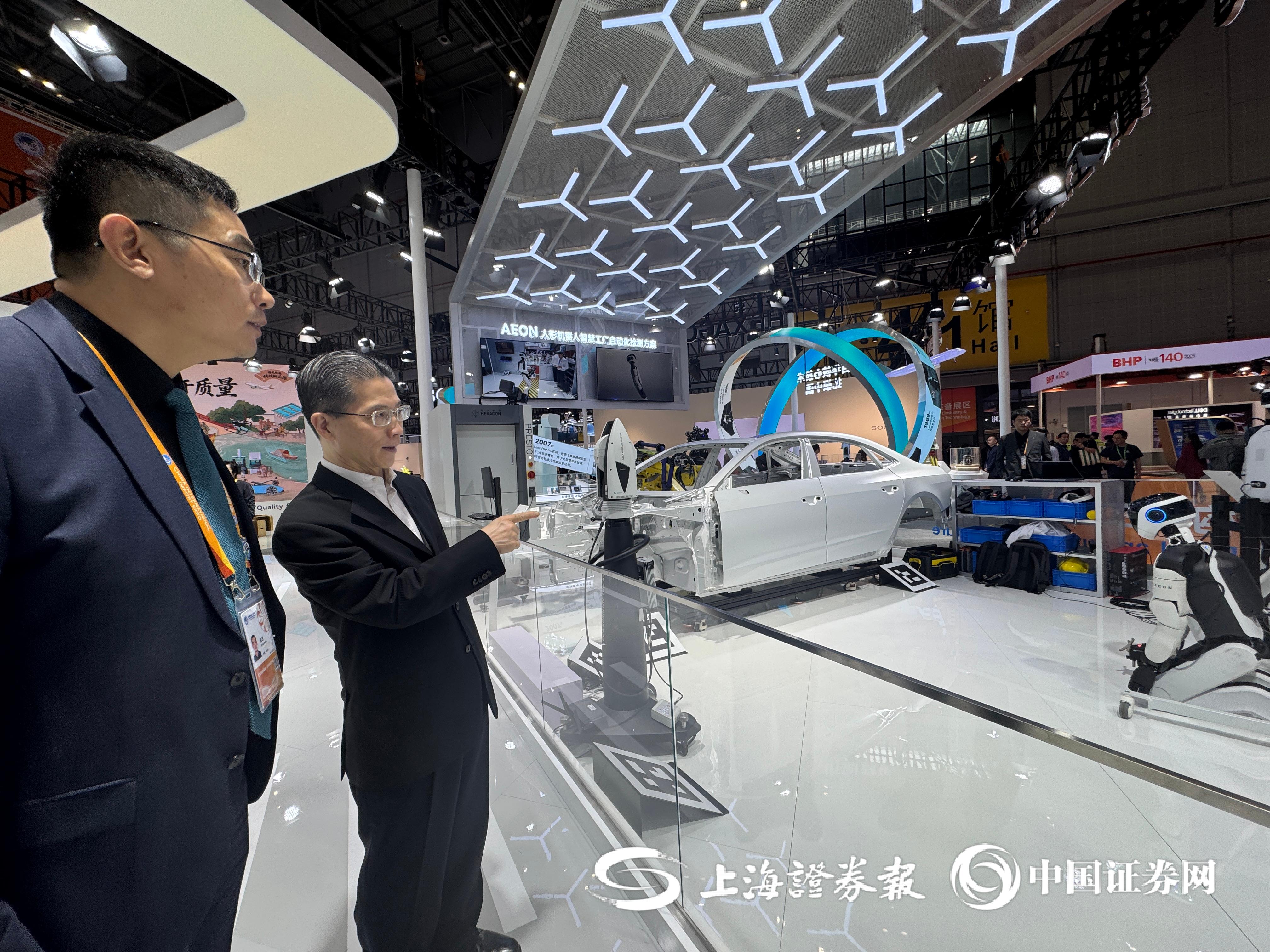 在技术装备展区,周汉民参观了海克斯康、三星、蔡司等企业。记者发现,他在三星展台参观的时间最长。