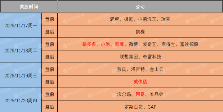 同时,富途控股、家得宝、沃尔玛、塔吉特、劳氏、美敦力、罗斯百货等美股财报也将登场。
