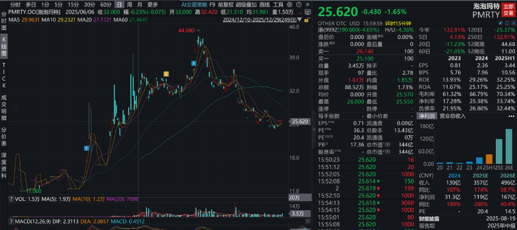 这一动态重创了市场信心。自今年8月触顶以来,泡泡玛特股价已累计下跌约44%,市值蒸发超过250亿美元。此前,凭借Labubu玩偶的流行,该公司曾上演了近期市场上最戏剧性的反弹之一,尽管今年以来股价仍翻了一番以上,但近期的数据表明,无论是国内的转售价格还是海外的假日销售,均出现了不及预期的迹象。