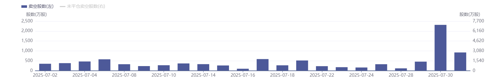 受以上消息影响,理想汽车的股价表现疲软,进而引发市场大幅卖空。根据港交所的数据,该公司的卖空股数从7月25日的330.50万股升至31日921.86万股,单日峰值达2316.06万股。
