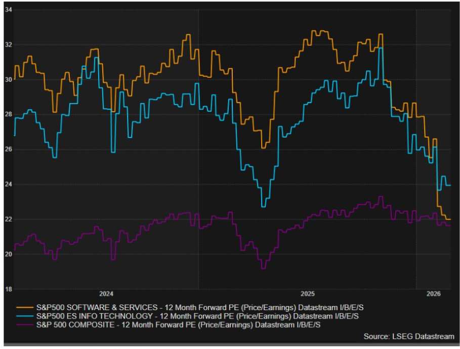 不仅美股,全球股票市场的软件板块在“AI颠覆一切”的恐慌中自2月以来持续重挫,尽管美股软件板块回购规模激增,但投资者并不买账,因为市场真正担心的是长期基本面与商业模式会不会被AI彻底重塑。