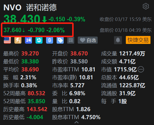 美股异动丨诺和诺德盘前跌超2% Structure肥胖药物研究结果直追诺和诺德与礼来
