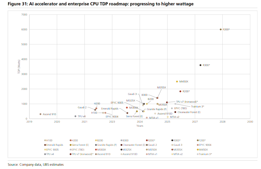 瑞银报告也指出,传统风冷在机柜功率密度超过30-40kW时,其效率和经济性便难以为继。