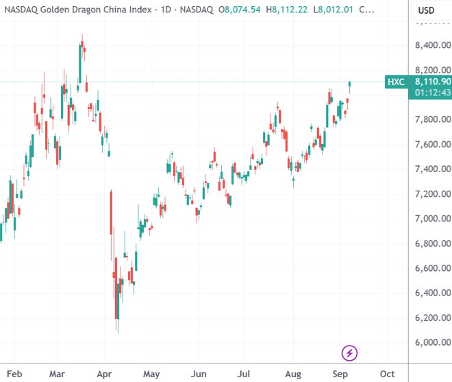 (纳斯达克中国金龙指数日线图,来源:TradingView)