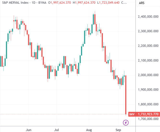 在这样的背景下,阿根廷市场的暴跌格外引人关注。由于上周日阿根廷总统米莱领导的阵营在布宜诺斯艾利斯省的选举中落败,阿根廷股市、主权债券和汇率全线杀跌,其中基准Merval指数暴跌13.25%。受此影响,美股市场的Global X MSCI阿根廷ETF周一收跌10.56%。