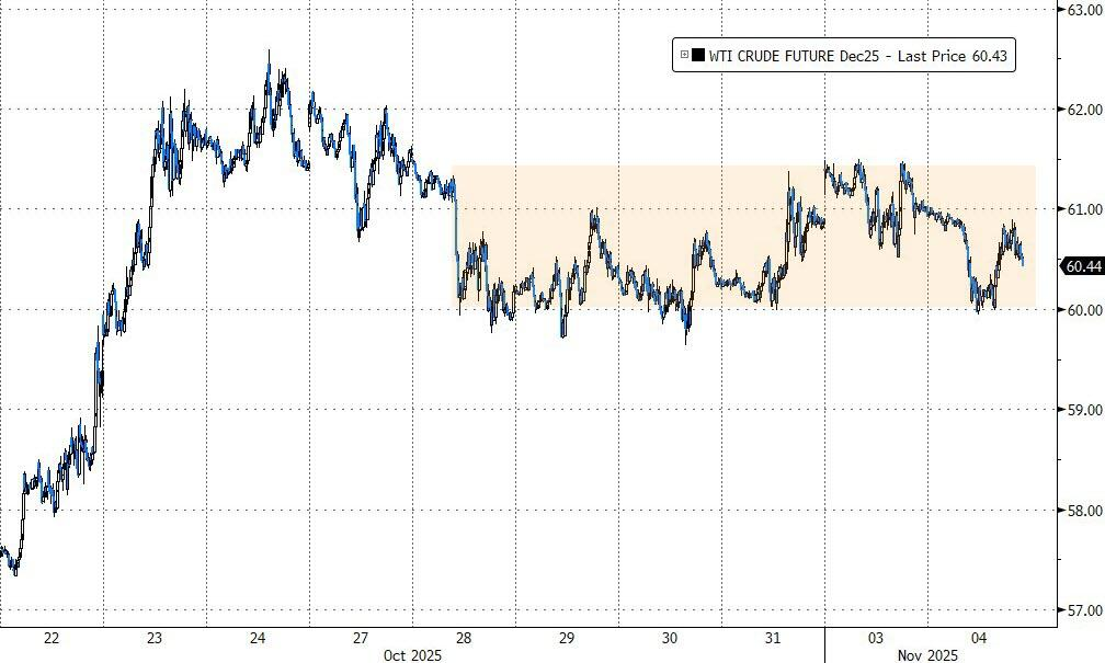 WTI 12月原油期货收跌0.49美元,跌幅0.80%,报60.56美元/桶。