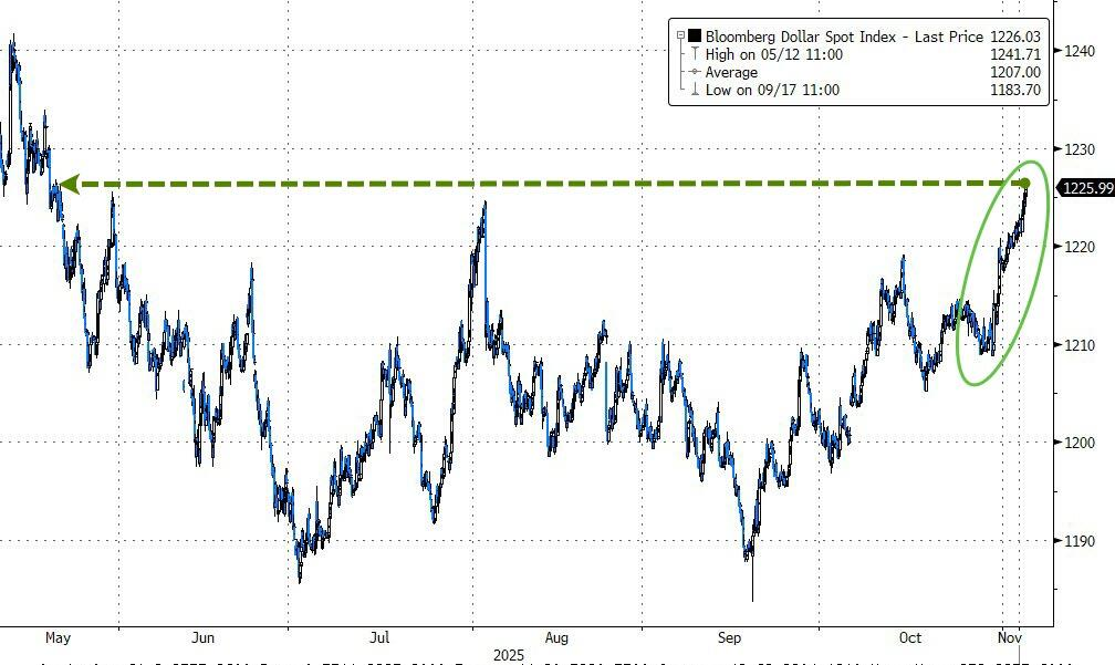 彭博美元指数涨0.38%,刷新日高至1226.13点。