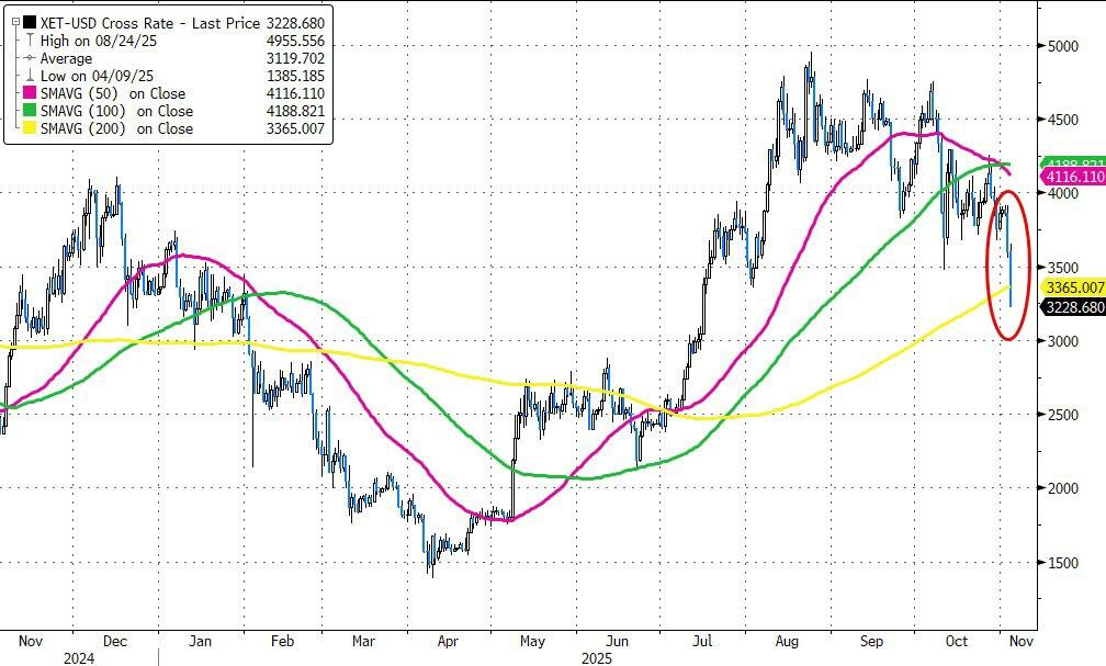 美元指数五连阳、又创三个月新高;英镑盘中跌近1%至近七个月新低,离岸人民币盘中跌超百点失守7.13至近三周低位。加密货币连日重挫,比特币四个多月来首次盘中跌穿10万美元,以太坊盘中跌超10%。