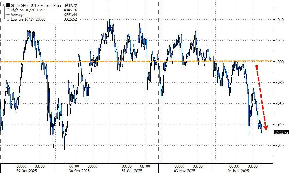 黄金跌回4000美元下方,盘中跌近2%,期金收创近以一个月新低。伦铜四连跌,收跌近2%至近两周低位。