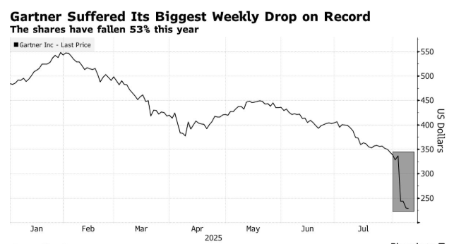 该公司将责任归咎于美国政府的政策,包括削减开支和加征关税。然而,分析师们却迅速将矛头指向了人工智能。投资者担心,即便该公司正在部署自身基于人工智能的工具,人工智能仍可能提供比高德纳公司的研究与分析更廉价的替代方案。