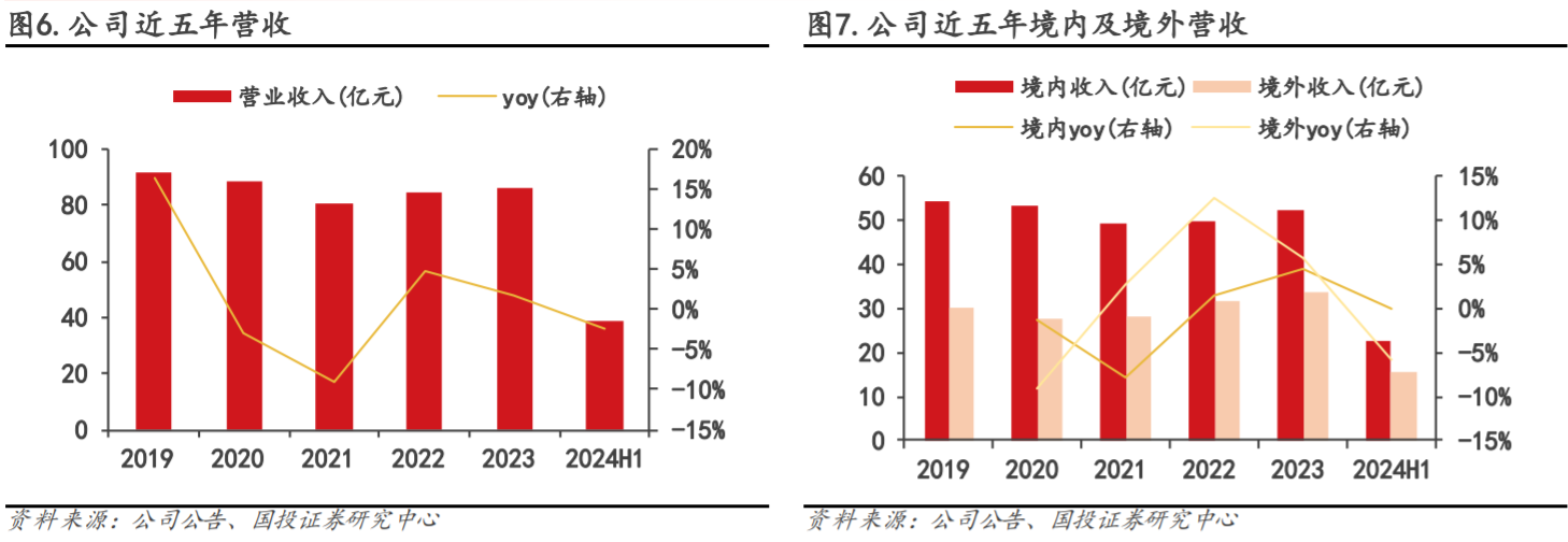 公司生产了中国第一只塑料油箱,也是中国最早“走出去”的汽车零部件企业之一,已在全球4大洲11个国家建立了25个生产基地和7个工程技术中心,近年来公司营收规模保持80亿元以上,海外营收占比常年维持在40%上下。