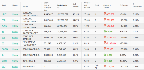 此外,百胜中国、雾芯科技、BOSS直聘等多股均遭减持,同时清仓了贝壳、中通快递、携程网等多只重仓股。