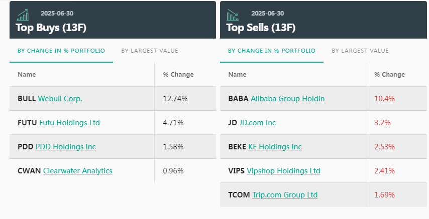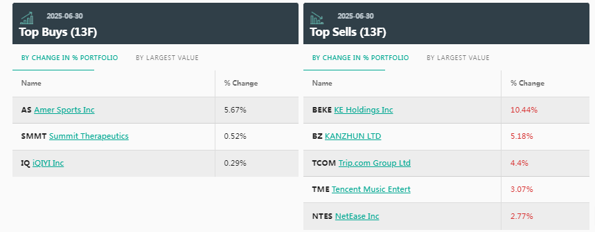 从13F报告来看,第二季度高毅、高瓴显著减持或清仓了部分中概股,而在美股市场上少有动作的李录却时隔三年重新建仓拼多多,体现出在第二季度美股动荡之际,不同基金对中概股前景的态度分歧。