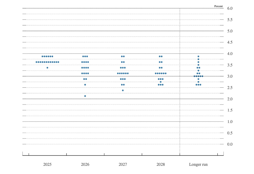 彭博首席经济学家Anna Wong指出,整体基调偏向鸽派,尽管存在一些鹰派暗流。委员会大幅上调增长预期的同时下调了通胀展望,并维持点阵图不变。