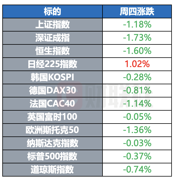 全球主要指数周四普跌,美股三大指数集体收跌,标普500指数和纳指盘中一度创下历史新高,但随后回落。