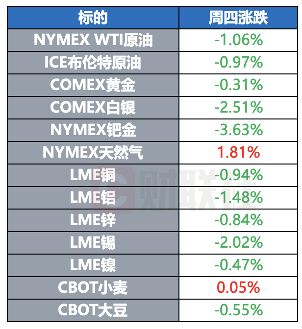 COMEX黄金期货收跌0.31%,报3342.3美元/盎司。COMEX白银期货收跌2.51%,报36.79美元/盎司。