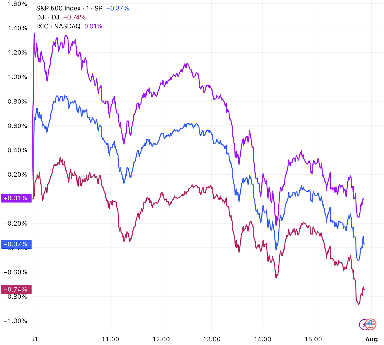 截至收盘,道琼斯指数跌0.74%,报44,130.98点;标普500指数跌0.37%,报6,339.39点;纳斯达克指数跌0.03%,报21,122.45点。