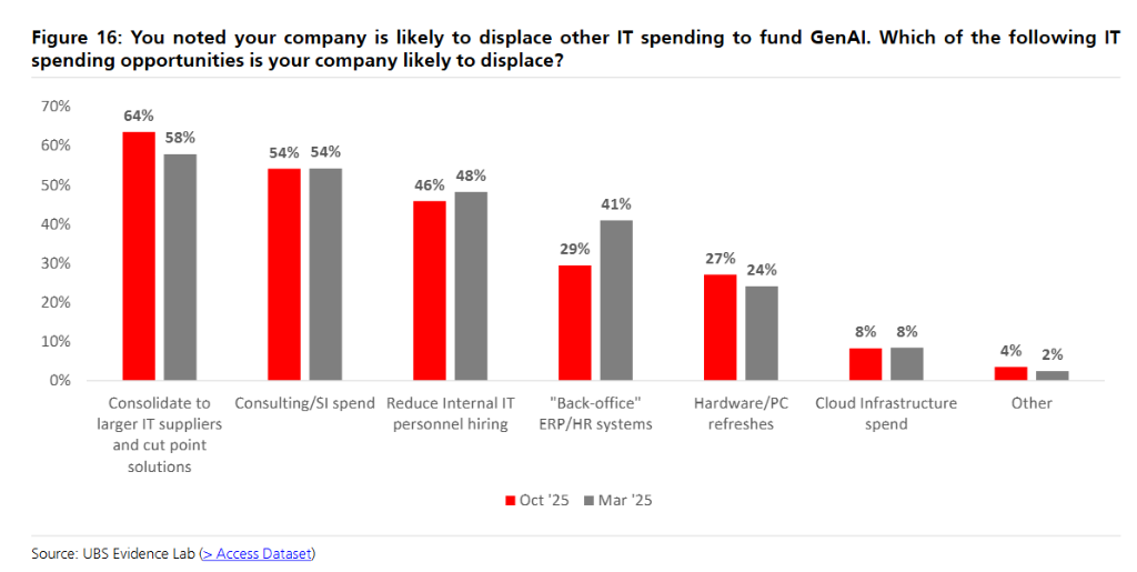 调查还发现,AI应用并未导致大规模裁员。40%的受访企业表示AI将推动员工增长,仅31%预期会减少人员,且只有1%预期大幅裁员。这一发现对基于席位收费的SaaS企业构成利好,缓解了市场对AI替代人工的担忧。