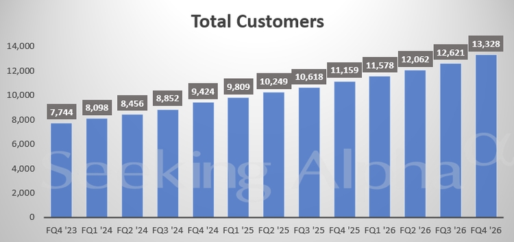 第四季度,衡量预订量的剩余履约义务(RPO)达到97.7亿美元,显著高于82.8亿美元的平均预期。公司目前拥有超过1.3万名客户,包括Figma(FIG.US)和贝莱德(BLK.US)等知名企业。