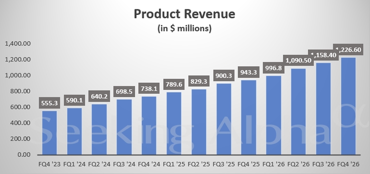 截至1月31日的第四季度,Snowflake产品营收同比增长约30%,达到12.3亿美元,超出预期的11.8亿美元。调整后每股收益为32美分,也高于预期的27美分。
