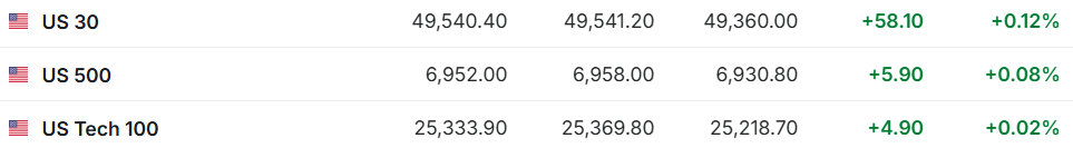 英伟达(NVDA.US)“炸裂”财报未能推动科技股进一步走高。英伟达第四财季营收同比增长73%,至创纪录新高的681亿美元,好于分析师普遍预测的659亿美元。盈利方面,营业利润同比增长81%至461亿美元,净利润同比增长79%至396亿美元。调整后的每股收益为1.62美元,好于分析师普遍预测的1.53美元。更令投资者感到鼓舞的是,英伟达还给出了超出预期的2027财年第一财季业绩指引。英伟达预计,第一财季营收为780亿美元,大幅超出分析师普遍预测的728亿美元。英伟达公布强劲业绩后,盘前上涨1.07%,但市场对其销售前景仍存疑虑。美股七巨头其余个股普遍走低。赛富时因增长指引不温不火,股价下挫2.1%。